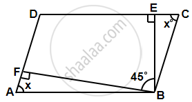 एक समांतर चतुर्भुज के अधिक कोण वाले शीर्ष से खींचे गये दो शीर्षलंबों के बीच का कोण 45∘ है। इस समांतर चतुर्भुज के कोण ज्ञात कीजिए।