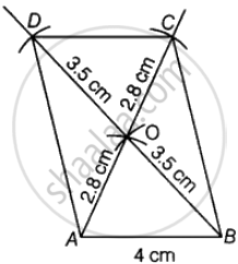एक समांतर चतुर्भुज की रचना कीजिए जिसकी एक भुजा 4 cm और दोनों विकर्ण 5.6 cm और 7 cm हों। दूसरी भुजा को मापिए।