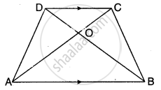⇒ `("क्षेत्रफल"(∆"AOB"))/("क्षेत्रफल"(∆"COD")) = ("AB"/"DC")^2 = ((2"CD")/"CD")^2` [AB = 2CD, दिया है]