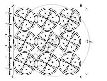 प्रत्येक वृत्त का क्षेत्रफल = r2 = `22/7 xx (7)^2 = 154 "सेमी"^2`