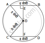 समजा, जीवा AB = 6 सेमी आणि CD = 8 सेमी