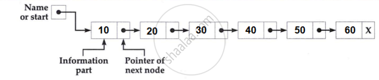 Explain a linked list with suitable example having six nodes with properly labeled diagram.