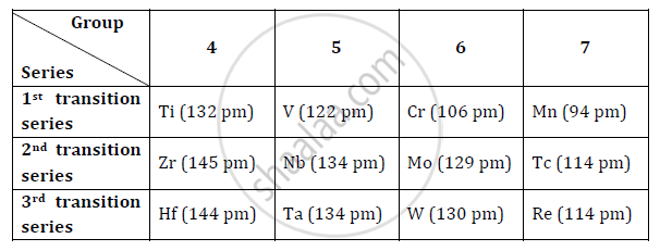 - Pairs of elements such as Zr–Hf (group 4), Nb–Ta (group 5), Mo–W (group 6) and Tc-Re (group 7) possess almost same size. These pair of elements are called ‘chemical twins’. The properties of these elements are also similar. So, due to lanthanoid contraction, elements of the second and third series resemble each other.