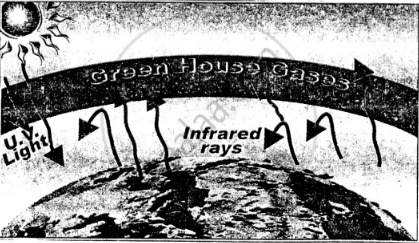 Explain how global warming takes place in the presence of green house gases. Give a reason why the surface temperature of earth is maintained in absence of green house gases.