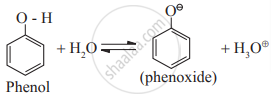 Phenoxide ion, the conjugate base of phenol, is resonace stabilized by delocalization of the negative charge.Therefore phenol ionizes in aqueous medium to a moderate extent, and thereby shows a weak acidic character.