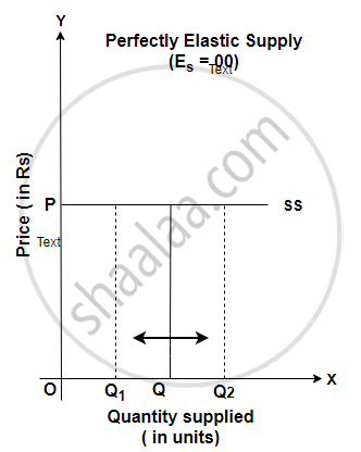 - Perfectly Elastic Supply: When there is an infinite supply at a particular price, and the supply becomes zero with a slight fall in price, then the supply of such a commodity is said to be perfectly elastic. In such a case,