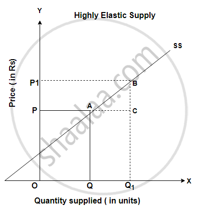 - Highly Elastic Supply (Es > 1): A supply curve that passes through the Y-axis and meets the extended X-axis at some point. For example, in fig. the supply is highly elastic.