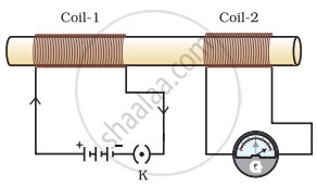 Take two different coils of copper wire having a large number of turns (say 40 and 90 turns respectively). Insert them over a non-conducting cylindrical roll, as shown in the figure given below. Connect the coil-1, having a larger number of turns, in series with a battery and a plug key