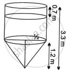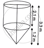The total height of the tank is 3.3 m, and the height of the conical part is 1.2 m. The diameter of the cylindrical as well as conical part is 1 m. Find the capacity of the tank. If the level of liquid in the tank is 0.7 m from the top, find the surface area of the tank in contact with liquid.
