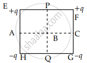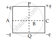 Figure represents a square carrying charges +q, +q, -q, -q at its four corners as shown. Then the potential will be zero at points