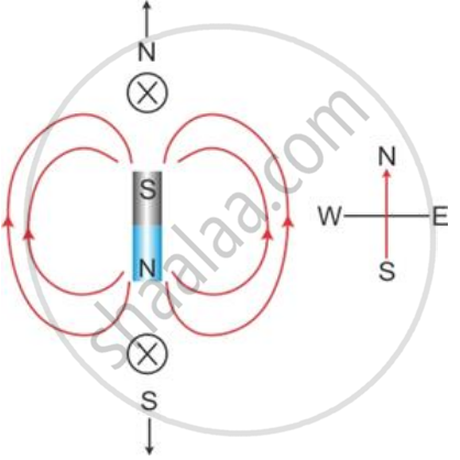 Figure. shows a bar magnet placed on the table top with its north pole pointing towards south. The arrow shows the north-south direction. There are no other magnets or magnetic materials nearby.