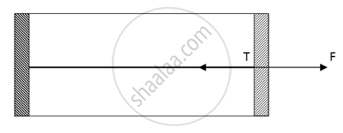 Figure shows a cylindrical tube of cross-sectional area A fitted with two frictionless pistons. The pistons are connected to each other by a metallic wire. Initially, the temperature of the gas is T0 and its pressure is p0 which equals the atmospheric pressure. (a) What is the tension in the wire? (b) What will be the tension if the temperature is increased to 2T0 ?