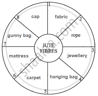 Fill in the names of useful items made from jute fibres in the following figure. One such example is given.