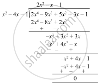 Find all zeroes of the polynomial `(2x^4 - 9x^3 + 5x^2 + 3x - 1)` if two of its zeroes are `(2 + sqrt3)` and `(2 - sqrt3)`