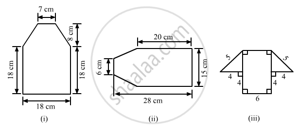 Find the area enclosed by each of the following figures [Fig. 20.49 (i)-(iii)] as the sum of the areas of a rectangle and a trapezium: