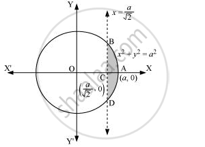 The area of the smaller part of the circle, x2 + y2 = a2, cut off by the line, `x = a/sqrt2`, is the area ABCDA.