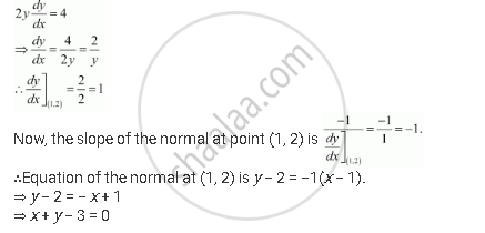 Find the equation of the normal to curve y2 = 4x at the point (1, 2).