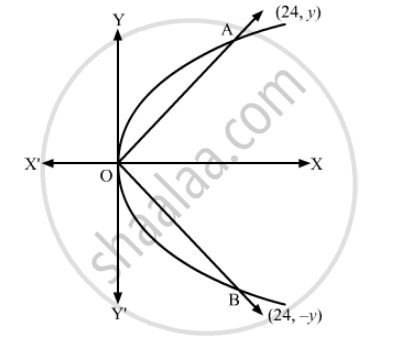 Let A and B be points on the parabola y2 = 6x and OA, OB be the lines joining the vertex O to the points A and B whose abscissa are 24.