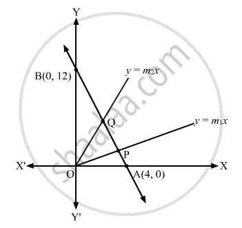 \[y = m_1 x \text { and } y = m_2 x\] be the lines that pass through the origin and trisect the line 3x + y = 12 at P and Q.
