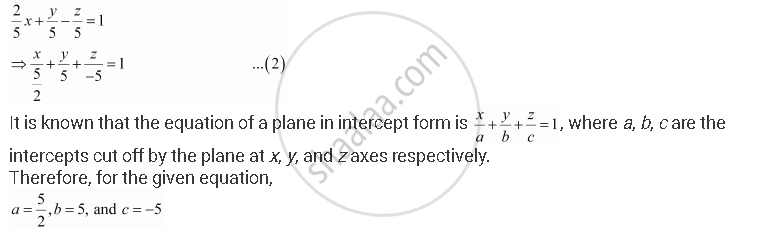 Thus, the intercepts cut off by the plane are `5/2, 5 and -5`