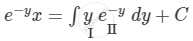 \[ \Rightarrow e^{- y} x = y\int e^{- y} dy - \int\left[ \frac{d}{dy}\left( y \right)\int e^{- y} dy \right]dy + C\]