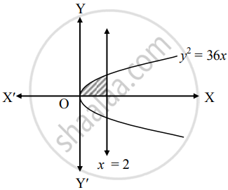 Find the area bounded by the curve y2 = 36x, the line x = 2 in first quadrant
