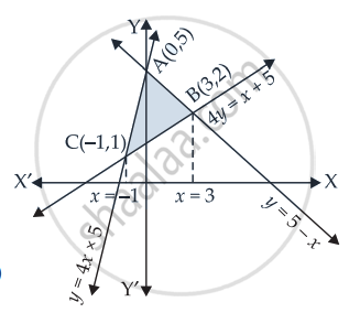 = `int_(-1)^0 (4x + 5) "d"x + int_0^3 (5 - x) "d"x - int_(-1)^3 (x + 5)/4 "d"x`