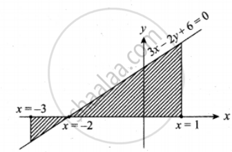 Area = `int_(-3)^(-2) - y"d"x + int_(-2)^1 y"d"x`