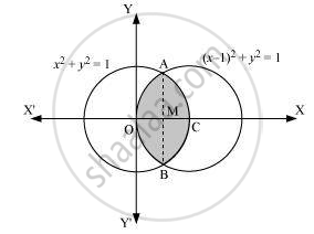 On solving the equations, (x – 1)2 + y2 = 1 and x2 + y 2 = 1, we obtain the point of intersection as A`(1/2, sqrt3/2) and B(1/2, -sqrt3/2)`