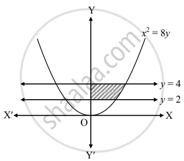 Find the area of the region bounded by the curves x2 = 8y, y = 2, y = 4 and the Y-axis, lying in the first quadrant