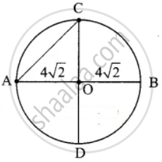 Find the length of the chord AC where AB and CD are the two diameters perpendicular to each other of a circle with radius `4sqrt(2)` cm and also find ∠OAC and ∠OCA