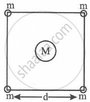 Four spheres each of mass m form a square of side d (as shown in figure). A fifth sphere of mass M is situated at the centre of square. The total gravitational potential energy of the system is `underlinebb(-"Gm"/"d"[(4+sqrt2)"m"+4sqrt"M"])`.