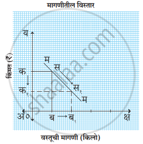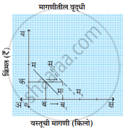 | ३. | हे त्याच मागणी वक्रावर (खालच्या दिशेने) दर्शविले जाते. | यासाठी मागणी वक्र मूळ स्थानावरून उजवीकडे सरकतो (नवीन वक्र तयार होतो). |
