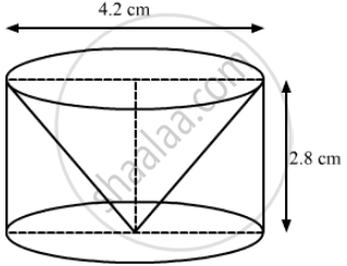 the height of the cone = the height of the cylinder = h =2.8 cm and the radius of the base, r = `4.2/2 = 2.1 "cm"`
