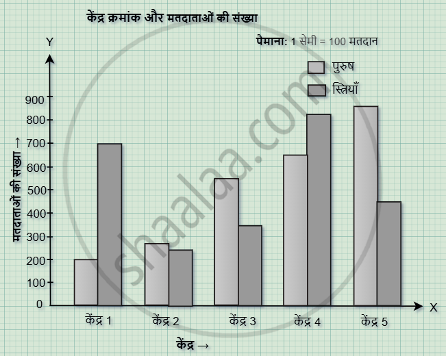 ग्रामपंचायत चुनाव में पाँच मतदान केंद्रों पर नीचे दिए तालिका अनुसार मतदान हुआ। इस जानकारी के आधार पर संयुक्त स्तंभालेख खींचो।