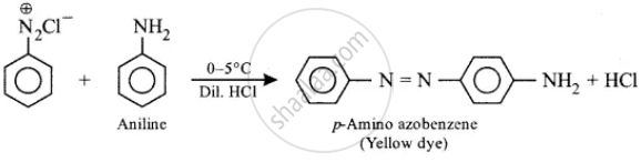 Benzene diazonium chloride is treated with an ice-cold solution of aniline in acidic medium.