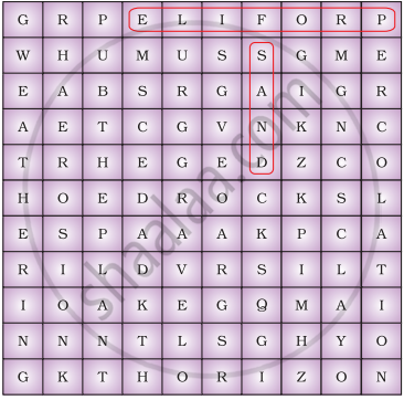 Several terms related to soil are hidden in the squares given in figure. Spot them and make a list. Two examples are given for you.