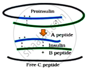 Give a schematic representation of the transformation of a pro-insulin into insulin.