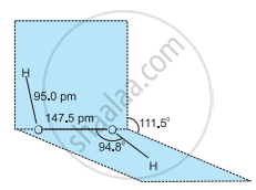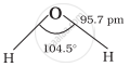 जल-अणु की सरंचना (Structure of Water Molecule) - गैस-प्रावस्था में जल एक बंकित (bent) अणु है। आबंध कोण तथा O-H आ दूरी के मान क्रमशः 104.5° तथा 95.7 pm हैं, जैसा चित्र (क) में प्रदर्शित किया गया है। अत्यधिक ध्रुवित अणु चित्र (ख) में तथा चित्र (ग) में जल के अणु में ऑर्बिटल अतिव्यापन दर्शाया गया है।
