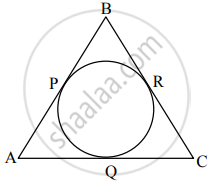 `{:("समजा" l("AP") = l("AQ") = x","),(l("QC") = l("RC") = y","),(l("BP") = l("BR") = "z"):}}` .....(i)