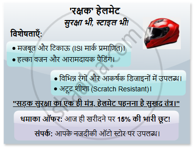 हेलमेट बनाने वाली एक कंपनी के लिए एक विज्ञापन लगभग 25-50 शब्दों में तैयार कीजिए। - Hindi Course - A