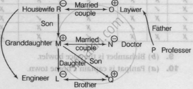 In a joint family of seven persons L, M, N, O, P, Q, and R, two are married couples. 'R' is a housewife and her husband is a lawyer. 'N' is the wife of 'M'. 'L' is an engineer and the granddaughter of 'R' and 'O' is the father-in-law of 'N', a doctor, and father of 'P', a professor. 'Q' is L's brother and M's son.