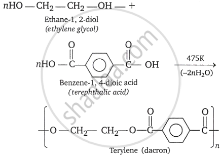 Terylene or Dacron is a copolymer of terephthalic acid and ethylene glycol. It is made by condensation polymerization of terephthalic acid and ethylene glycol at about 475K.