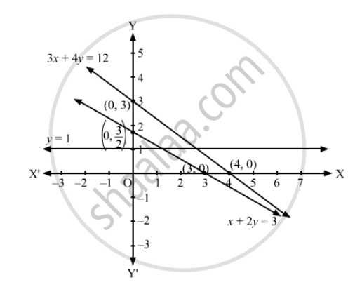 x + 2y ≤ 3, 3x + 4y ≥ 12, y ≥ 1, x ≥ 0, y ≥ 0