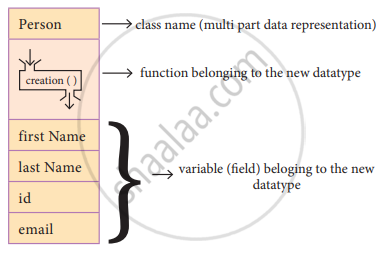 The class (structure) constmct defines the form for multi-part objects that represent a person. Its definition adds a new data type, in this case, a type named Person. Once defined, we can create new variables (instances) of the type. In this example, Person is referred to as a class or a type, while p1 is referred to as an object or an instance. You can think of class Person as a cookie-cutter and p1 as a particular cookie. Using the cookie cutter you can make many cookies. Same way using class you can create many objects of that type.