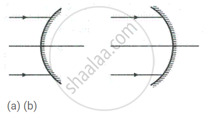 Complete the following diagrams in Figure by drawing the reflected rays for the incident rays 1 and 2.