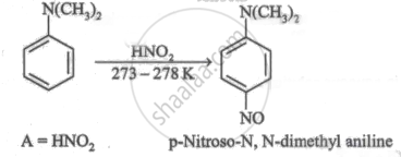 \[\ce{N-N Dimethyl aniline ->[A][273-278 K] 4-nitroso-N-N-dimethylaniline}\]