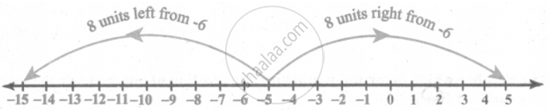 Identify the integers and mark on the number line that are at a distance of 8 units from −6