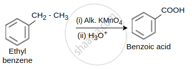 \[\ce{C6H5CH2 - CH3 ->[(i) alk. KMnO4][(ii) H3O+] ?}\]