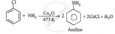 Identify the product obtained when chlorobenzene is heated with ammonia and Cu2O at 473 K under pressure.